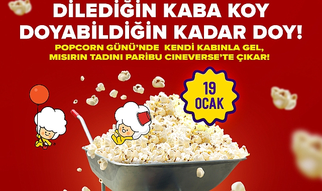 Birbirinden farklı filmlere ev sahipliği yapan Paribu Cineverse, 19 Ocak Popcorn Günü’ne özel kampanya düzenliyor. 19 Ocak günü tüm lokasyonlarda film izleyen sinemaseverler, “Patlamış Mısırını Dilediğin Kaba Koy, Doyabildiğin Kadar Doy!” kampanyasıyla mısıra doyacak.