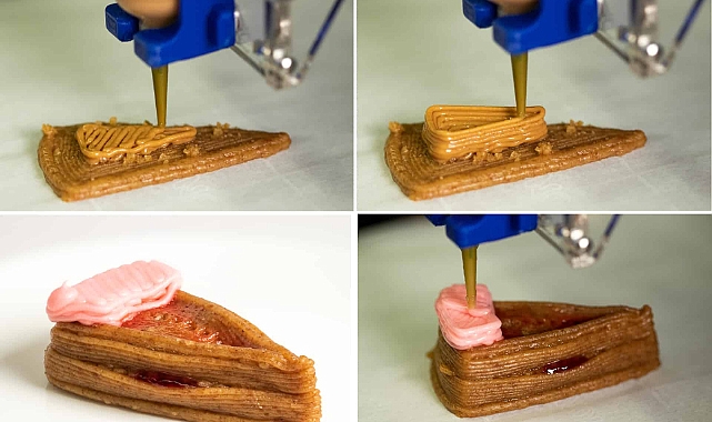 Elde edilen pek çok farklı mühendislik başarısı ile üç boyutlu (3D) baskı teknikleri değerini çoktan kanıtlamış durumda. Ve şimdi bu teknoloji, şimdiye kadarki en lezzetli başarısını elde etti: Cheesecake.Bilim insanları, “dijital pişirme” adını verdikleri yaklaşımlarının, insan eliyle pişirmeye göre birçok avantajı olduğunu söylüyor. Sadece söylemekle de kalmıyorlar; çok katmanlı kekleri nasıl başarılı bir şekilde oluşturabileceğini gösteriyorlar.Columbia Üniversitesi ve Pace Üniversitesi'ndeki makine mühendisleri, yedi temel bileşen içeren bir dizi farklı cheesecake oluşturmak için özel yapım bir 3D yazıcı kullandılar. Bu yedi temel bileşen graham kraker, fıstık ezmesi, Nutella, muz püresi, çilek reçeli, vişne dalmaları ve kremadan oluşuyordu. Bu ürünlerine başka bir fütüristik dokunuş ekleyen bir şekilde, kekler daha sonra yüksek hassasiyetli lazerlerle pişirildi. 3D yazıcı teknolojisinin çok katmanlı bir kek yapmak için kullanılabileceğini gösteren testler, graham krakerlerinin her katman için en iyi temeli oluşturduğunu, fıstık ezmesi ve Nutella'nın ise muz ve reçel gibi daha yumuşak malzemeleri tutacak havuzlar oluşturmak için destekleyici katmanlar olarak kullanılmasının en iyi seçenek olduğunu gösterdi.Kekleri pişirmek için malzemeleri süper yüksek hassasiyetle ısıtan lazerler kullanıldı. Araştırmacılar, bu tekniği çiğ bir alevle bir crème brûlée'yi kızartmaya benzeyen, ancak milimetre ölçeğinde kontrol edilebilen bir teknik olarak tanımlıyorlar.Dijital pişirme yaklaşımının, yiyeceğin besin ve kalori içeriğini hassas bir şekilde kalibre etmeye imkan tanıdığı da vurgulanıyor.