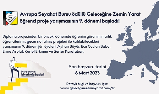 2022-2023 döneminde 9. kez düzenlenen Geleceğine Zemin Yarat, mimarlık bölümü lisans programı öğrencilerinin diploma projelerinden bir önceki projeleri ile katılabilecekleri, seyahat bursu ve gezi ödüllü bir öğrenci proje yarışmasıdır.