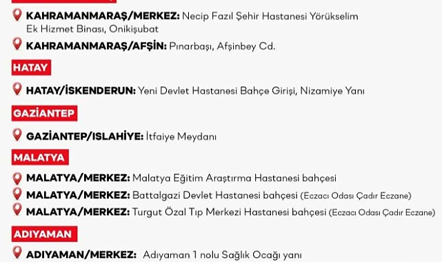 Listede 5 ayrı ilde toplam 8 adet seyyar eczaneye yer veriliyor.Kahramanmaraş