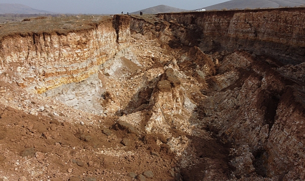 Derinliği 15, genişliği 50 ve uzunluğu 150 metreyi bulan yarık havadan görüntülendi.
