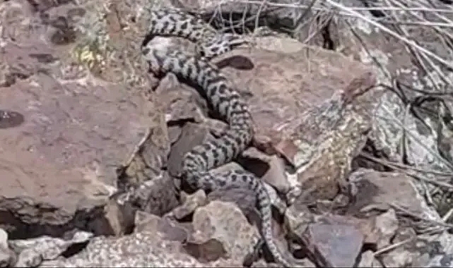 Ağrı'da doğada nadir rastlanan zehirli yılan türlerinden Wagner engereği, cep telefonu kamerasıyla görüntülendi.
