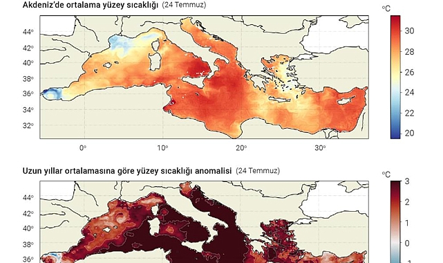 Akdeniz’de 24 Temmuz’da 28,4 dereceyle bugüne kadar kaydedilen en yüksek deniz yüzeyi sıcaklığına ulaşıldı.