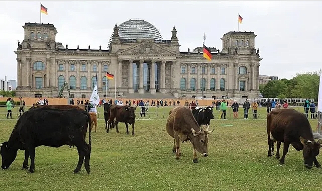 Göstericiler "İnekler merada" yazılı pankart açarak çevresi barikatlarla kapatılan meclisin önündeki çimenlik alana inek sürüsünü otlamaya bıraktı.Greenpeace'in kampanya sözcüsü Lasse van Aken, yaptığı açıklamada, Berlin'in ortasında inekleri çimenlik alana salmanın garip gelebileceğini belirterek "Ancak ineğin doğal yaşam alanı meradır. Ne yazık ki Almanya'daki ineklerin çoğu yılın yüzde 70'inde ahırda kalıyor. İneğin meraya ait olduğuna dikkati çekmek istiyoruz." dedi.