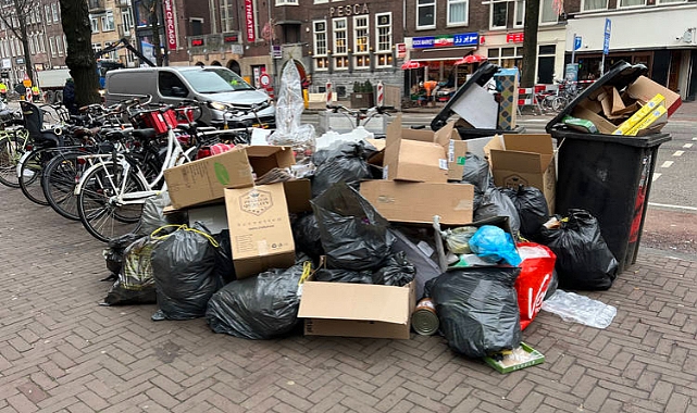 Amsterdam'da temizlik işçilerinin grevi sebebiyle çöp yığınları oluştu