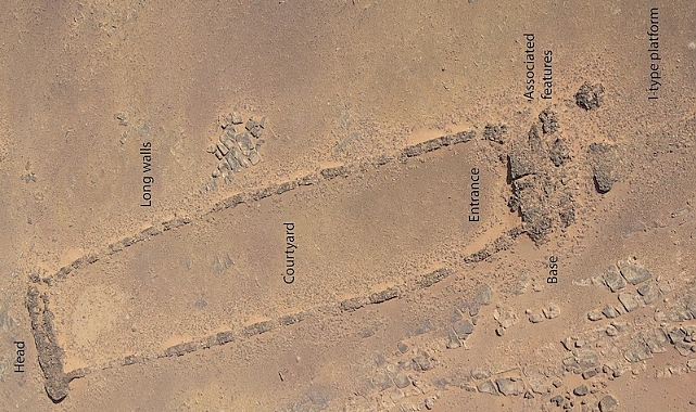 Arabistan’da 1.600’den fazla mustatil belgelendi ve bunlar yaklaşık 7.000 yıl öncesine tarihleniyor. Suudi Arabistan’daki arkeologlar, tarih öncesinde kullanılan bir ritüel alanı olan 7.000 yıllık bir çöl anıtının içinde yüzlerce hayvan kemiği ve insan kalıntıları keşfetti.Yaklaşık 30’lu yaşlarında yetişkin bir erkeğe ait olan kalıntılar, adını Arapça dikdörtgen anlamına gelen bir yapı olan mustatil yapısında bulundu. Yapı, 1970’lerden beri Suudi Arabistan’da keşfedilen 1.600’den fazla mustatilden biri. Çoğunlukla kumun altına batmış olan bu yapılar, Arap Çölü’nün fillerin gezindiği ve suaygırlarının göllerde zaman geçirdiği yemyeşil bir otlak olduğu dönemde inşa edilmişti.Mustatilleri inşa eden insanlar, bilinmeyen bir kültün üyeleriydi. Araştırmacılar, iklimdeki bir değişikliğin toprağı yavaş yavaş çöle dönüştürdüğü için, kült üyelerinin büyük olasılıkla sığırlarını bilinmeyen tanrılara kurban ederek onu korumak için toplandıklarını söylüyor.Şimdi, PLOS One dergisinde yayımlanan bir çalışmada ayrıntıları verilen yeni bir mustatil kazısı, zaman içinde kaybolan gizemli yapılar ve onlara tapanlarla ilgili daha fazla ayrıntıyı ortaya çıkardı.Çalışmanın baş yazarı Melissa Kennedy, “Mustatillere ve bunlarla ilişkili inançlara dair hemen hemen hiçbir şey yazılmadı. Bugüne kadar sadece 10 mustatil kazıldı ve bu çalışma ilk yayınlananlardan biri. Yani bu gelenek hakkında henüz pek bir şey bilmiyoruz.” diyor.Mustatillerin görünümleri farklılık gösteriyor, ancak tipik olarak yaklaşık 1,2 metre yüksekliğindeki alçak kaya duvarlarından oluşan uzun dikdörtgen yapılar. Kennedy, kazıların bazı kalıntıların içinde, muhtemelen ziyafet ve ritüel kurbanlar için ayrılmış merkezi odalara yol açan iç duvarlar ve sütunlar da dahil olmak üzere karmaşık yapıları ortaya çıkardığını söylüyor.Araştırmacılar tarafından kazılan mustatil’in açıklamalı bir görüntüsü.Bu yapıları kullananlar, mustatillerin bir ucundan girip diğer ucuna kadar 20 ila 600 metre veya daha fazla yürüyerek “baş” denilen moloz taştan bir platforma ulaşıyordu. Başın içindeki bir oda, kült üyelerinin tanrılarıyla iletişim kurmak için kullandıkları, bazen bir göktaşından kaynaklanan kutsal bir taş barındırıyordu. Al-Ula antik kentinin 55 kilometre doğusunda yer alan ve araştırmacılar tarafından kazılan mustatil, 140 metre uzunluğunda ve yerel kumtaşından inşa edilmişti. Baş kısmındaki kutsal sayılan taşı, araştırmacıların çevresinde 260 hayvan kafatası ve boynuz parçası buldukları büyük bir dikili taştı.Araştırmacılar, bazı parçaların evcilleştirilmiş keçiler, ceylanlar ve küçükbaş hayvanlara ait olduğunu söylese de, kemik parçaları çoğunlukla evcilleştirilmiş sığırlara ait çıktı.Kennedy, “Muhtemelen yanlarında hayvanları getirmişler ve potansiyel olarak onları burada öldürmüşler, boynuzları ve kafatasının üst kısımlarını bir tanrıya sunmuşlar ve potansiyel olarak kalıntıların geri kalanıyla ziyafet çekmişlerdi.” diyor.“Hayvan kalıntılarının geri kalanını bulamadığımız için bu öldürme işleminin yerinde mi yoksa başka bir yerde mi gerçekleştiğinden emin olamayız. Bununla birlikte, boynuzlar, özellikle de çok hızlı bozulan keratin çok iyi durumda olduğundan, bunun büyük olasılıkla yerinde meydana geldiğini düşünüyoruz. Bulgular, boynuzların çıkarılmasından ve mustatilde sunulmasından önce muhtemelen sadece kısa bir süre olduğunu öne sürüyor.”Araştırmacılar, mustatil başının hemen kuzeyinde, Avrupa ve Orta Doğu’da Neolitik ve Tunç çağları boyunca inşa edilmiş bir tür mezar odası olan bir sanduka buldular. Adama ait gömülmüş kemiklerin analizi, öldüğünde 30’lu yaşlarında veya 40’lı yaşlarının başında olduğunu ve muhtemeleneklem iltihabının en yaygın şekli olan dejeneratif bir eklem hastalığı olan osteoartrit olduğunu ortaya çıkardı.İnsan ve hayvan kemiklerinin radyokarbon tarihlemesi, adamın hayvanlar katledildikten 400 yıl sonra gömüldüğünü gösterdi; bu, mustatillerin tekrarlanan hac yerleri olduğunun bir işareti.Üç dik taşlı ana (merkezi) mustatil odası.Kennedy, “İnsanların mustatillere gömüldüğüne dair giderek daha fazla kanıt buluyoruz. Ancak bu gömüler hep daha geç oluyor; hayvan adaklarıyla aynı zaman dilimine tarihlenmiyorlar.” diyor.“Mustatil yerlerinin kullanımları sona erdikten sonra bile önemini koruduğunu ve daha sonraki nesillerin bu yapılara sahiplik iddiasında bulunarak, esasen geçmişle bir bağ iddia ederek ölülerini bu yerlere gömdüklerini varsayıyoruz.”Mustatillerde gerçekleştirilen törenlerin amacı bir muamma olmaya devam ediyor. Çölü kapsayan yapılar, Arabistan için MÖ 7000 ile MÖ 6000 arasında süren ve onu ve Kuzey Afrika’yı çok daha nemli hale getiren, ancak yine de kuraklığa ve yavaş çölleşmeye yatkın hale getiren Holosen Nemli Dönem’de inşa edildiğinden – araştırmacılar, bu yapıların içinde uygulanan ritüeller ile kuruyan toprağı yağmurla kutsamaya yönelik toplumsal bir istek arasında bir bağlantı olabileceğini düşünüyorlar.Şimdi araştırmacılar, mustatillerin tarih öncesi pastoral topraklara, nehirlere ve göllere yakın yerleşimini coğrafi olarak haritalayarak bu hipotezi test ediyorlar. Sürmekte olan araştırma, eski dini uygulamalar ile bölgenin eski iklim krizi arasındaki bağlantıları ortaya çıkarabilir.