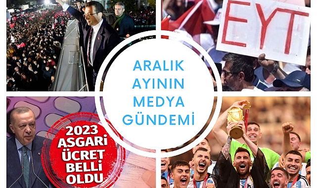 ARALIK AYINDA EN ÇOK BU İÇERİKLER KONUŞULDUMedya takip kurumu Ajans Press, medyada en çok konuşulan haber başlıklarını çıkardı. Ajans Press’in 1-31 Aralık tarihleri arasında 15 bini aşkın gazete, dergi, TV kanalları ve internet haber sitelerinde en çok haber olan içerikleri çıkardığı araştırmada, ilgili içeriklerde medyaya binlerce haber yansıdı. Asgari ücret zammından EYT’ye, Ekrem İmamoğlu’na verilen hapis cezasından Arjantin’in şampiyonluğuna Aralık ayının en çok konuşulanları şu şekilde oldu;