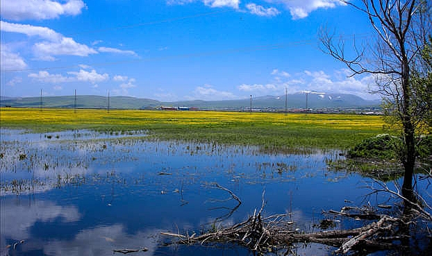 Ardahan'ın Göle ilçesinde ilkbaharla yeniden canlanan Şerefin Dağı ve Üç Tepeler, dağcıların yürüyüş ve tırmanış rotaları arasında bulunuyor