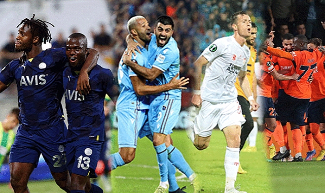 Avrupa Ligi ve Konferans Ligi'ndeki temsilcilerimiz Fenerbahçe, Trabzonspor, Başakşehir ve Sivasspor maçlarını kazandı. Böylece Avrupa kupaları tarihinde ilk kez dört Türk takımı da aynı gün sahadan galibiyetle ayrıldı. Öte yandan ülke puanında büyük bir sıçrama yaşayan Türkiye, 4 basamak birden yükselerek 14. sıraya yerleşti.Türkiye'yi Avrupa Ligi ve Konferans Ligi'nde temsil eden takımların hepsi karşılaşmalarından galibiyetle ayrıldı. Türk futbolu için bir ilkin yaşandığı gecenin ülke puanına da katkısı büyük oldu.TÜRK FUTBOL TARİHİNDE İLKAvrupa Ligi'nde mücadele eden temsilcilerimizden Fenerbahçe, deplasmanda AEK Larnaca'yı 2-1 mağlup etti. Trabzonspor, sahasında Monaco'yu 4-0 yenerek Fransa'ya gönderdi. Konferans Ligi'nde Başakşehir, sahasında RFS'yi 3-0'la geçerken, Sivasspor ise Ballkani karşısında Kosova'da geriden gelerek 2-1 kazandı. 4 galibiyetiyle birlikte, Avrupa kupaları tarihinde ilk kez tüm Türk takımları aynı günü galibiyetle kapadı. ÜLKE SIRALAMASINDA 14. SIRAYA YÜKSELDİK4 temsilcimizin de sahadan galibiyetle ayrılması ülke puanına da ciddi katkı yaptı. Türkiye, ülke sıralamasında 4 basamak birden yükselerek 14. sıraya yerleşti.