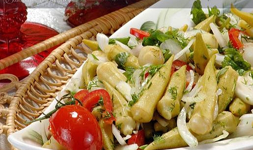 Bamya sevenler için harika bir tarifimiz var, lezzetiyle sofralarınızın vazgeçilmezi olacak Bamya Salatası Tarifi.Bamyanın faydaları saymakla bitmez. Düşük karbonhidratlı ve düşük kalorili olan bamya aynı zamanda K1 ve C vitaminleri açısından zengindir. Ayrıca güçlü bir antioksidandır. (Bamyanın faydalarını detaylı olarak bilmek isterseniz ‘bamyanın sağlık ve beslenme üzerine 7 faydası’ başlıklı makalemizi inceleyebilirsiniz.)Bu kadar faydalı bir sebzeyi aslında sofralarımızda daha fazla konuk etmemiz gerekir, ancak bamya üzerine tarif sayısı maalesef çok fazla değil. Biz bugün hem sağlıklı, hem de diyet yapanlar için bambaşka bir lezzet içeren Bamya Salatası Tarifi’ni sizlerle paylaşmak istedik.Diğer tariflerden farklı olarak Bamya Salatası Tarifi’ni biz ceviz ve susamla lezzetlendirdik ve daha sağlıklı ve düşük kalorili bir tarif hazırlamak için fırını kullandık.Bu haliyle Bamya Salatası Tarifi’miz özellikle diyet yapanlar ve sağlıklı beslenenler için harika bir salata alternatifi oldu. Mevsiminde taze taze bamyanın tadına doyum olmaz, ancak mevsim dışında da konservesini kullanarak bu harika salata tarifini hazırlayabilirsiniz.