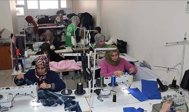 Batmanlı kadınlar depremzedeler için giysi dikiyor