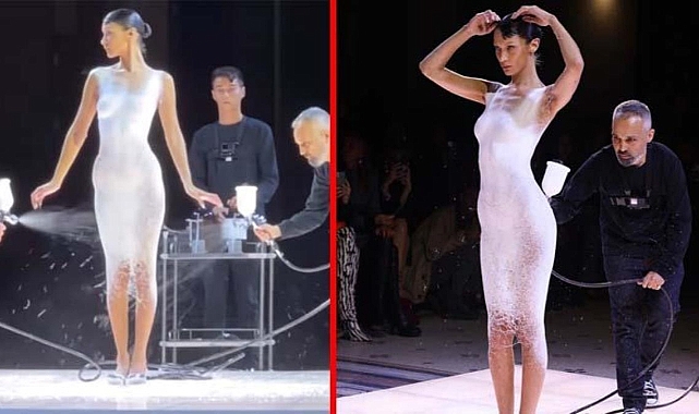 Bilim ve teknolojiyle 'anında moda' çağı Paris'te insan tenine temas ettiğinde kumaşa dönüşen maddeyle tasarlanan elbise, podyuma yarı çıplak gelen Bella Hadid'in üzerine enjekte edildi. Hadid, bu elbiseyle moda tarihine geçerken kişiye özel kıyafetler, bitkisel deriler, 3 boyutlu numuneler, sanal giyinme deneyimleri gibi teknolojiler önümüzdeki yıllarda giyim sektörünün vazgeçilmezi olacak.