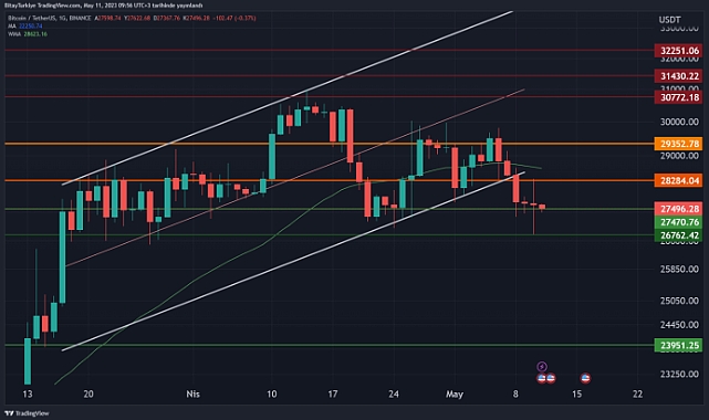 Bitcoin’de yaşanan dünkü yükselişi için makro ekonomik bir veri olan ABD enflasyonun açıklanmasını en önemli sebep olarak söyleyebiliriz. Geçmişte de Bitcoin fiyatına önemli etkileri olan ABD enflasyon verisi %5’lik beklentiye karşı %4,9 olarak açıklandı. Enflasyonda düşüş ivmesinin devam etmesi piyasalara moral getirdi. Bitcoin kısa sürede %3 civarı değer kazanarak 28.300$’a kadar yükseldi. Ancak bu seviyeleri koruyamayadı ve akşam saat 20.00 civarında olağan dışı bir fiyatlama görüldü. Çok kısa sürede Bitcoin 28.300$ seviyelerinden 1.500$ geri çekildi ve 26.800$’ı gördü. Ardından yine aynı hızla toparlandı ve 27.500$ bölgesinde konsolide oldu.Dünkü ani düşüşün sebebine gelecek olursak daha önce Mart ayında da gündeme gelen ABD hükümetinin çeşitli yollarla ele geçirdiği yüksek miktarda Bitcoin’leri sattığı yönünde yayılan FUD haberleri ve devamında telegram kanallarında bir kullanıcının paylaştığı, gerçekleştiği öne sürülen bir Bitcoin transfer mesajı oldu. Blok zinciri istihbarat ve analitik şirketi Arkham hesabına alarm kuran bir kullanıcı 270 milyon dolar değerindeki yaklaşık 10.000 Bitcoin’in satıldığını gösteren bir bildiri yayınladı. Bu bildiri ardından hızlıca FUD dediğimiz endişe ve paniğe sebep olarak piyasada ani bir satış baskısı getirdi. Daha sonra Arkham tarafından yapılan açıklamada bu etiketlemelerin şirket tarafından yapılmadığı ve ABD hükümetiyle ilişkili olan cüzdanlarda bir hareket olmadığı vurgulandı. Haberin yalanlanmasının ardından Bitcoin toparlanarak tekrardan 27.500$ bölgesine yükseldi ve yeni günde de bu seviyelerde fiyatlanarak başladı. Her ne kadar gerçek olmayan bir haber kaynaklı düşüş gerçekleşse de dün öğle saatlerinden sonra piyasada hakim olan olumlu havanın kaybolmuş olduğu görülüyor. Şu anca kırılgan bir bölgede fiyatlanan Bitcoin’in kısa vadede tekrardan 28.300$ bölgesinin üzerinde yer alması gerekiyor. Bu gelişmeler görülürken Ethereum ise 1835$ bölgesinde fiyatlanıyor. Yüksek dalgalanmaların etkisiyle kripto para piyasasında 24 saatlik hacim 50 milyar dolar bölgesi ile son günlere kıyasla yüksek bir seviyede gerçekleşti. Piyasanın toplam değeri ise 1,13 trilyon dolar ile son 1 haftadır yatay – negatif bir görünüm içerisinde. Altcoinlerde ise Bitcoin ve Ethereum’a kıyasla baskı devam ediyor. Bugün piyasalarda takip edilecek en önemli veri ise ABD üretici enflasyon verisi. Beklenenden düşük gelen bir veri düne benzer şekilde bir yükseliş havası yaratabilir. BİTCOİN TEKNİK ANALİZ ,Bitcoin, dün ABD’den gelen beklenti altı enflasyon verisiyle birlikte %3 civarında artışlar gösterse de dün akşam Türkiye saatiyle 20:05’te gelen yalan haber akışı %5’lik bir geri çekilmeyle 26.777$ seviyelerini test etmesine neden oldu. Yatırımcıda panik havası yaratan bu durumun ardından hızlı toparlanmalarla beraber Bitcoin, bu sabah saatlerinde 27.500$ seviyelerinde hareketlilik gösteriyor. Önemli bir destek seviyesi olan 27.470$ üzerine tutunmuş olması şimdilik pozitif; fakat olası bir geri çekilme halinde tekrar 27.470$ seviyesini test etmesini beklenebilir. Bu seviyenin kırılması halinde ise 26.760$ seviyesi oldukça kritik bir destek seviyesi olarak karşımıza çıkıyor. Fiyatlamaların olumluya dönmesi durumunda ise direnç seviyeleri olarak 28.274$ ve 29.352$ olarak karşılanabilir. ETHEREUM TEKNİK ANALİZ Ethereum dün yaşanan geri çekilme ile birlikte Mart ayından beri süren yükselen trend üzerindeki hareketine son verdi. Trendin kırılmasıyla birlikte bu sabah saatlerinde 1.830$ seviyelerinde hareketlilik gösteriyor. Ethereum’da yükseliş hareketliliğinin devam etmesi için trend çizgisinin üzerinde (1.845$) günlük kapanışlar yapması önemli olacaktır. 1.845$ üzerinde kalıcılık sağlaması halinde sırasıyla 1.885$ ve 1.941$ seviyeleri önemli direnç seviyeleri olarak karşılanabilir. Olası düşüş hareketinin devamı halinde ise 1.803$ ve 1.780$ seviyelerinin destek olarak çalışması beklenebilir.