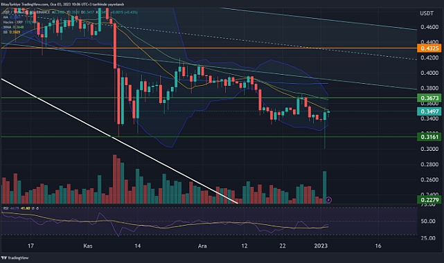Bitcoin’den üç günlük yükseliş serisi Bitay Araştırma Departmanı Analisti Betül Yavuz, Avrupa ve Amerika piyasaları için yılın ilk işlem gününü, kripto para piyasasının seyrini değerlendirdi. Dün yılbaşı nedeniyle kapalı olan küresel piyasalar ve kripto para piyasası sakin bir gün geçirdi. Yeni yılın ilk gününü yükselişle kapatan ve bu sabah saatlerinde de 16.750$ seviyelerinde fiyatlanan Bitcoin, 3 günlük bir yükseliş serisi başlatmış oldu. Ethereum ise 1200$’ın üzerindeki seyrini sürdürüyor ve anlık olarak 1215$ fiyatından alıcı buluyor.Küresel piyasalarda 2023 yılının ilk işlem günü bugün olacak. Bu sene en çok duymayı beklediğimiz başlık olan resesyon, sabah saatlerinde IMF Başkanı Georgieva tarafından da kullanıldı. Georgieva’nın dünyanın üçte birinin resesyona girebileceği ve 2023’ün geçtiğimiz yıldan daha zorlu geçeceğini belirtmesi yatırımcıları korkuttu.Yeni yılın ilk işlem gününde sabah saatlerinde Avrupa borsaları %0,5 - %1 arası satıcılı seyrediyor, ABD vadelileri ise yatay pozitif olarak ilerliyor. Bugün ve yarın İngiltere, ABD ve Avrupa’da imalat verileri takip edilecek, gün içi fiyatlamada etkisi yüksek olabilir. Haftanın en önemli gündem başlıkları ise yarın açıklanacak olan FED Tutanakları ile cuma günü duyurulacak olan Tarım Dışı İstihdam verilerinde olacak. Piyasaların gözü kulağı da bu verilerde diyebiliriz.Yurt içinde ise bu sabah gündem Aralık ayı enflasyon verisi. Aralık ayında enflasyon aylık %2,6’lık beklentiye karşın %1,18 olarak açıklandı. Türkiye 2022 yılını %64 enflasyonla kapatmış oldu. 3 OCAK BITCOIN TEKNİK ANALİZ Bitcoin, üçüncü günü de yeşil mumla karşılayarak 16720$ seviyelerinde fiyatlanıyor.Hala yükselen trend üzerinde hareketlilik göstermesi pozitif duruşunun devam etmesine neden oluyor. Yukarı yönlü hareketliliğin devamında ilk direnç seviyesi olarak 50 günlük hareketli ortalama olan 16830$ ardından ise 17000$ seviyeleri karşılanabilir. Bollinger bandı hacimsiz hareketlilik nedeniyle oldukça daralmış durumda ve bir süre sonra sert bir hareketlilik gelmesine neden olabilir. Aşağı yönlü hareketlilikte ise yükselen trend çizgisi 16575$’ın destek olarak çalışması beklenebilir. Bu seviyeye tutunamaması halinde bir sonraki destek seviyesi olarak 16370$ çalışabilir. 3 OCAK XRP TEKNİK ANALİZDün XRP için oldukça hareketli bir gündü. Yoğun balina hareketleri %11 civarında düşüşler olmasına neden oldu. Sert düşüşlerin ardından alımlarla günü %3 artışla kapattı. Gün içerisinde 0.3490$ seviyelerinde fiyatlanan XRP, yukarı yönlü hareketliliğin devamında ilk direnç olarak 0.3508$ ardından ise 0.3673$ seviyeleri karşılanabilir. Aşağı yönlü hareketlilikte ise alt Bollinger bandının (0.3310$) destek olarak çalışması beklenebilir. Bu seviyeye tutunamaması halinde sert geri çekilme ile 0.3160$ seviyeleri önemli destek seviyesi olarak karşımıza çıkıyor.