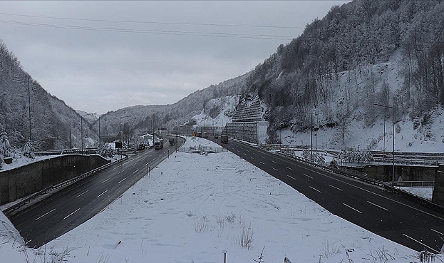 Otoyolun Abant Kavşağı, Bolu Dağı Tüneli ve viyadükler bölgesinde dün başlayan yağış etkisini sürdürüyor. Kar kalınlığının 30 santimetreyi geçtiği bölgede karayolları ekipleri, kar küreme ve tuzlama çalışması yapıyor.