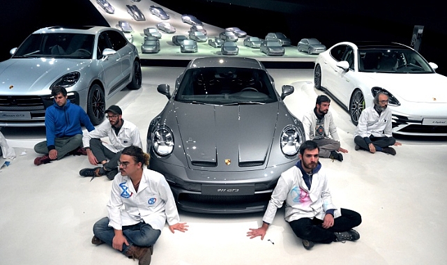 Fransa’nın başkenti Paris’te ‘Extinction Rebellion’ adlı çevreci gruba üye aktivistler, Uluslararası Otomobil Fuarı’nda dün yaptıkları eylemde, otomobil sanayisinin ‘çevreci’ araçlarla imajını temizlemeye çalışmasına ve bireysel otomobilleri geleceğin ulaşım araçları olarak tanıtmaya devam etmesine tepki gösterdi.Eylemciler, ellerini tutkalla fuarda bulunan arabalara yapıştırdı. Bazı eylemciler de fuara tepki gösterdikleri büyük bir pankart açtı. Eyleme katılan 11 aktivist gözaltına alındı.Almanya’da ise çevreci ‘Scientist Rebellion’ (Bilim İnsanı İsyanı) grubundan aktivistler, Wolfsburg şehrinde bir Volkswagen fabrikasının showroomunda düzenledikleri eylemde Porsche modellerine bilimsel araştırma makaleleri yapıştırarak kendilerini zemine tutkalla tutturdu.VW’nin siyaset üzerindeki zararlı etkisini protesto eden aktivistler, Volkswagen CEO’su Oliver Blume’den kendileriyle diyaloga girmesini talep etti. Toplam 42 saat süren eylemin sonunda çevik kuvvet teçhizatlı yaklaşık 40 polis tarafından zorla dışarı çıkarılarak gözaltına alındılar.
