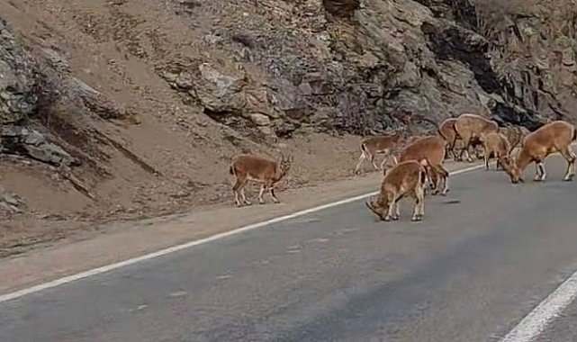 Dağ keçileri buzlanmayı önlemek için yola dökülen tuzları yedi