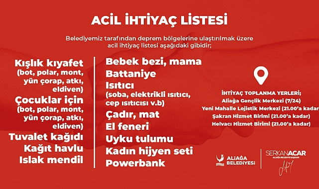 SON GÜNCEL DEPREM ACİL ihtiyaç listesi...