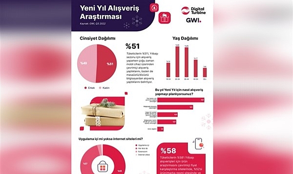 Pandemi, enflasyon ve küresel sıkıntılara rağmen yaklaşan yeni yıl yeni umutları da beraberinde getiriyor. Rengarenk ışıklarla süslenen çam ağaçları, süslemeli kupalar, kokulu mumlar, yeniyıl temalı vitrinlerle birlikte yılbaşı döneminin heyecanı etrafımızı sararken, dünyanın dört bir yanındaki tüketiciler de şimdiden kutlamalara hazırlanıyor. Digital Turbine; Avrupa, Orta Doğu ve Afrika ülkelerini kapsayan EMEA bölgesinde Türkiye’nin de dahil olduğu ondan fazla ülkedeki kullanıcıların yılbaşı dönemi satın alma alışkanlıkları ve tercihlerini analiz etmek için ‘Yılbaşı Alışveriş Dönemi Araştırması’ verilerini yayınladı. Araştırmaya göre Türkiye’deki tüketicilerin yüzde 49’u bu yıl sevdiklerine kıyafet, yüzde 38’i kitap, yüzde 36’sı ise ayakkabı ve takı/aksesuar hediye almayı düşünüyor.
