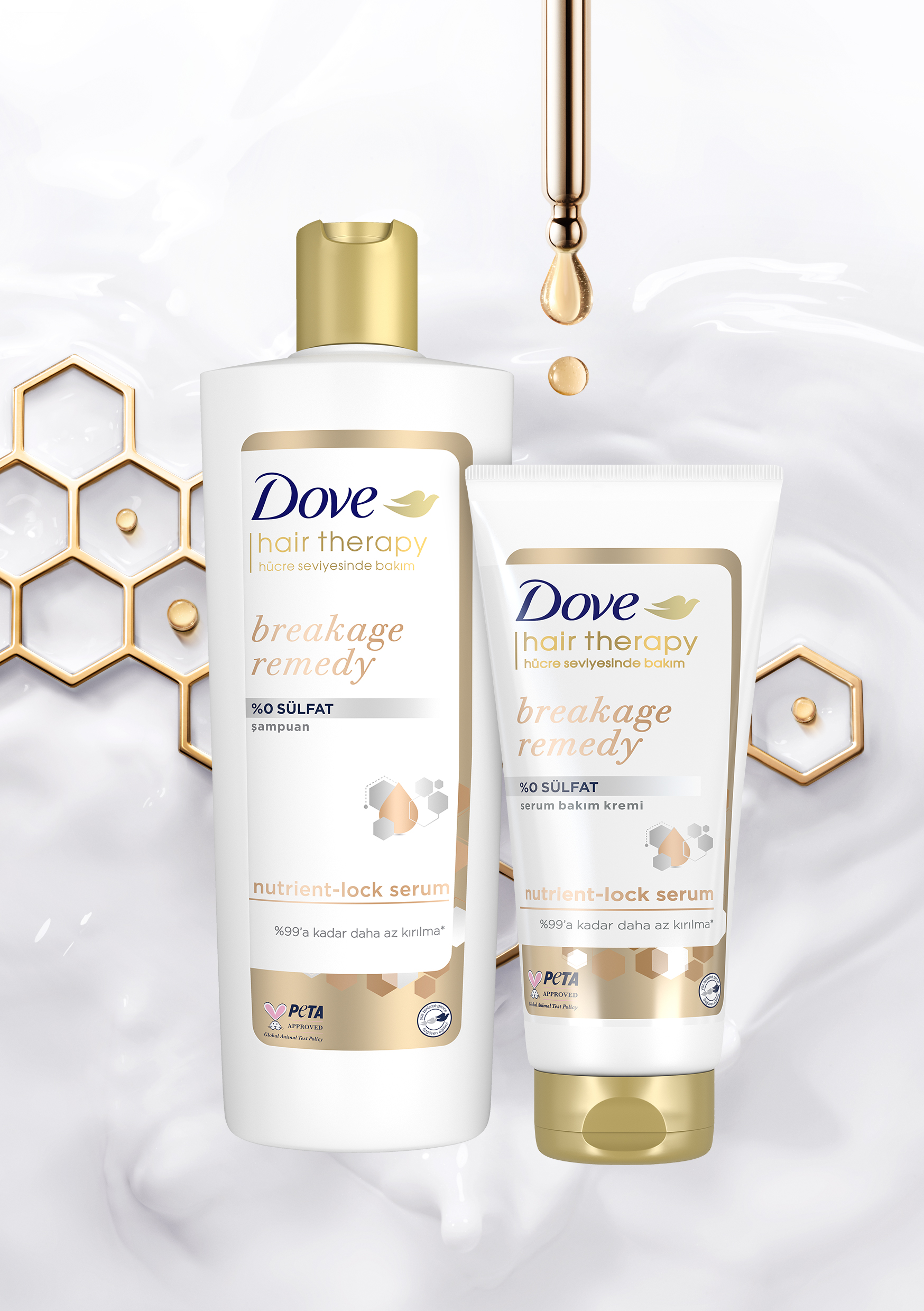 Saç bakımını cilt bakım trendleriyle birleştirerek kadınların günlük saç ve saç derisi bakımında özel ihtiyaçlarını karşılamak için sınıfının en iyi içerikler ile tasarlanan Dove Hair Therapy Serisi, farklı ihtiyaçlara özel olarak üretilen iki varyantı ile tüketicilere tam da aradıkları saç bakımını sunuyor: Yıpranmış saçlar için Dove Breakage Remedy ve kuru saçlar için Dove Hydration Spa. Sülfatsız ve parabensiz olan her iki varyant da şampuan ve serum bakım kreminden oluşuyor. Dove’un son 5 yıldaki inovasyon çalışmalarının en önemli sonuçlarından biri olan Dove Hair Therapy serisi, saçlara hücre seviyesinde bakım sağlayarak, yeni bir saç bakım deneyimi ile tüketicilerle buluşuyor. Dove Breakage RemedyYıpranmış saçlara özel geliştirilen, dökülme karşıtı şampuan ve serum bakım kreminden oluşan Dove Hair Therapy Breakage Remedy Serisi, etkin nemlendirici ve besleyici içeriği ile saç teline hücre seviyesinde bakım sunuyor. Ayrıca, nutrient-lock serum içeriği sayesinde kırılmaları %99’a kadar önleyerek gür görünen, güçlü ve uzun saçlara kavuşturuyor. Bu ikili seri, Dove Hair Therapy Breakage Remedy Kırılma Karşıtı Sülfatsız Şampuan ve Dove Hair Therapy Breakage Remedy Kırılma Karşıtı Sülfatsız Serum Bakım Kremi’nden oluşuyor.