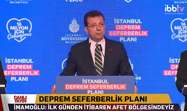 İBB Başkanı Ekrem İmamoğlu, 1 Mart günü yapılan basın toplantısında İstanbul Deprem Seferberlik Planı’nı açıkladı. Bilim insanları ve konunun uzmanlarının katılımıyla gerçekleştirilen toplantıda çalışmalar ve yol haritaları konuşuldu.İmamoğlu'nun açıklamasında "6 Şubat 2023 ne yazık ki hepimiz için hiçbir şeyin eskisi gibi olmayacağı sürecin başlangıcı. Bu deprem millet olarak hepimizi harekete geçirdi. Bütün milletimizin başı sağ olsun. İBB olarak tümden harekete geçerek ilk günden afet bölgesine koştuk. Sadece AFAD'ın bizi eşleştirdiği Hatay'da değil bütün bölgeye elimizden ne geliyorsa ulaştırmak için gayret ettik. Gücümüz yettiğince sürdürülebilir biçimde yaraların tümden sarılması anına kadar İstanbul halkı adına Büyükşehir Belediyesi olarak o bölgede olacağımızı belirtmek istiyorum. 2 bine yakın personelimizin halen Hatay'da bulunduğunu belirtmek istiyorum. Artık hayatımıza eskisi gibi devam edemeyeceğimizi hepimiz çok net olarak biliyoruz. On binlerce canımız hala belki göçük altında enkazlardan çıkarılıyorken biz normal yaşamımızı sürdüremeyiz. Hiçbirimizin buna hakkı yok. Hepimizin her şeyi yeni baştan düşünmeye son derece yüksek ihtiyacı vardır. Depremi ülkemizin birincil sorunu kabul etme zorunluluğumuz var. Deprem bu kadim topraklar için bir gerçekliktir. İstanbul Büyükşehir Belediyesi olarak güçlü bir inisiyatif alıyoruz, düzen değiştiriyoruz. Düzeni değiştirmek zorundayız. Düzen değiştirmek cesaret ister. Cesur olabilmek için önce yanlış giden bir sürecin, düzenin parçası olmaktan net olarak kurtulmak gerekir. İBB yıllardır bu konuyu konuşuyor, 1999 yılından beri. Ancak bu düzene kalıcı ve cesur bir şekilde değişim adına gerekli adımları atamamıştır.Deprem dirençli İstanbul için yüksek bir seviyeli seferberlik başlatıyoruz. Bu pek ala mümkündür. Var olmak, yaşamak istiyorsak mümkün olmak zorundadır. Deprem İstanbul için kaçınılmaz bir gerçek ve gerçek anlamda beka meselesidir. Tarihini saatini bilmiyoruz. Hiç kimsenin kuşkusu olmasın ki deprem bu kentte yaşanacaktır. Eğer millet olarak bu kadim topraklarda neslimizi yaşatmak istiyorsak deprem dirençli yerleşim alanlarını mutlaka hızlıca oluşturmak zorundayız. Tüm halkımızla birlikte çalışmak ve birlikte başarmak istiyoruz. Gerçekçi stratejilere mutlaka ihtiyacımız vardır. Kaynağa ihtiyacımız vardır. Sorunun devasa büyüklükte olduğunu hepimiz biliyoruz. İşbirliğine ihtiyacımız vardır. Her kesimin harekete geçmesi ve geçirilmesi gerekiyor. Her kesimin harekete geçmesi ve geçirilmesi gerekmektedir.Bilime ihtiyacımız var. Bilim yegane ışığımızdır. Dün olduğu gibi bilimin söylediklerini görmezden gelerek yolumuza devam ettiğimizde canımızı yakan, sayısını söylemekte ve sayısını beyan etmekte bile zorlandığımız on binlerce insanımızı kaybettiğimizde yaşadığımız acıyı defalarca yaşarız. Görmezden gelerek yolumuza devam etmemiz mümkün değildir. 7 bilimsel kuruldan gelen raporları paylaşacağız. Bu kadim şehri depreme dirençli hale getirebilmek için her şeyi sıfırdan başlatıyoruz. Ekiplerimiz ve bilim insanlarımız çalışmalarına aralıksız devam edecek. Yapılması gereken devasa işler var. İşin mali boyutuyla mevzuatıyla İBB'nin ötesinde çok daha büyük bir durum olduğunu hepinizin gözlerinin önüne sereceğiz. Bugün yeni bir güçlü başlangıç yapıyoruz."Kahramanmaraş merkezli depremlerin ardından binalarının dayanıklılığı için başvuru yapanların sayısını paylaşan Ekrem İmamoğlu, şunlar söyledi:"110 bini aşkın hızlı tarama başvurusu aldık. İmar yönetmeliğinin revizyon çalışmasını Meclis'e sunuyoruz. Bütçe afet planı için revize edilmelidir. Boş söze kimsenin tahammülü kalmadı. Bu mesele partiler üstüdür, herkese çağrı yapıyorum. Gelin bütün Marmara'yı kapsayan deprem konseyini kuralım."
