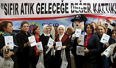 Emine Erdoğan’ın himayesinde yürütülen “Sıfır Atık Projesi” kapsamında düzenlenen sergide, hurda metalden ve ölmüş sedir ağaçlarından sanatsal eserler yapan sanatçılar Adnan Ceylan, Murat Yıldırım Çakar, Murat Ilgar ve Asaf Erdemli’nin eserleri yer alıyor. Sanatçıların yanı sıra orta öğretim ve lise öğrencilerinin katılımıyla gerçekleştirilen sergide Emine Erdoğan, gençlerin Dünya Çevre Günü'nü kutladı ve hazırlanan kumbaralara atıkları atarak “Sıfır Atık” uygulaması yaptı. Sergide ayrıca organik atıklardan elde edilen kompost gübreler kullanılarak çocuklarla bitki dikimi gerçekleştirildi. “Sıfır Atık” uygulaması, Ankara’daki kamu kurumları öncelikli olmak üzere tüm yurtta atıkların kaynağında ayrıştırılması esasına uygun olarak yürütülüyor. Proje kapsamında 15 bin kamu görevlisine eğitimler verilerek, “Sıfır Atık” uygulaması ile ilgili mevzuat taslağı hazırlandı. Cumhurbaşkanlığı Külliyesi, Çevre, Şehircilik ve İklim Değişikliği Bakanlığı başta olmak üzere, Başbakanlık, TBMM, TRT gibi kurumlar resmi olarak “Sıfır Atık” uygulamasına geçti. Dünya Çevre Günü vesilesiyle Beştepe Millet Kongre ve Kültür Merkezi’nde hafta boyunca çevre etkinlikleri düzenlenecek. Bu çerçevede ortaokul ve lise öğrencilerinin katılımıyla 6 Haziran Çarşamba günü Serdar Kılıç, 7 Haziran Perşembe günü ise Dr. Halit Yerebakan'ın doğa ve çevre konulu sohbetleri gerçekleştirilecek.