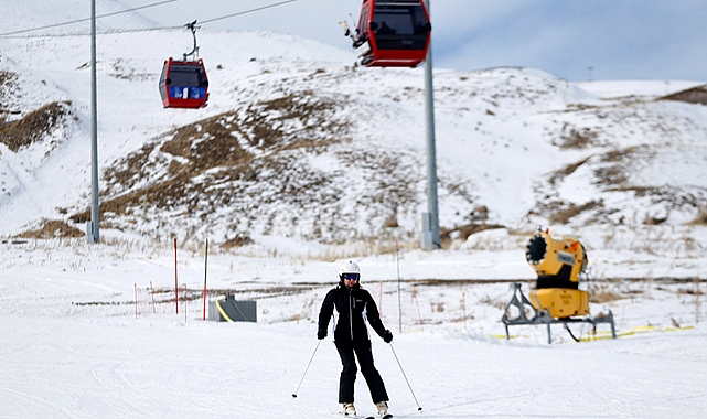 Türkiye'deki birçok kayak merkezinde beklenen yağışların başlamaması nedeniyle pistler açılamazken Erciyes, ürettiği 300 bin ton suni karla 21 Aralık'tan bu yana hizmet veriyor.
