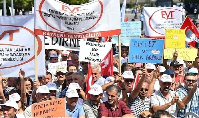 Milyonların beklediği EYT ile ilgili düzenlemeden kötü haber geldi. Yaklaşık 1,5 milyon kişinin merakla beklediği EYT düzenlemesi ocak ayına kaldı.Emeklilikte Yaşa Takılanlar EYT ile ilgili düzenlemede son dakika gelişmesi yaşandı. Yaklaşık 1,5 milyon kişinin merakla beklediği düzenlemenin takvimi belli oldu.EYT düzenlemesine ilişkin kanun teklifinin, 2023 yılı bütçe takvimi dolayısıyla aralık ayında görüşülmesi imkanının olmayabileceği ifade edildi. Teklifin, ocak ayında Meclise sunulması bekleniyor.BAKAN BİLGİN NE DEMİŞTİ ? Çalışma ve Sosyal Güvenlik Bakanı Vedat Bilgin, geçtiğimiz günlerde Meclis Genel Kurul’daki bütçe görüşmelerinde açıklamalarda bulunmuştu. EYT’de en kapsamlı ve gerçekçi düzenlemeyi yapacaklarını ifade eden Bilgin, “İnşallah sözümü tutarım ocak ayına sarkmaz ve bu ayın sonunda Meclis’in gündemine getiririz” demişti.TAKVİM NEDEN SARKTI?EYT ilgili çalışmanın bir türlü sonuçlanmamasının arkasında yatan neden geçtiğimiz gün bakanın yaptığı açıklamayla ortaya çıkmıştı.SGK'nın 1999 yılı öncesi kayıtlarının dijital ortamda olmaması nedeniyle, memurlar tek tek dosya üzerinden arşiv taraması yapmak zorunda kaldı. Bakan Vedat Bilgin bazı evrakların kaybolduğunu açıkladı.YAŞ ŞARTI NE OLACAK ?Milyonların merakla beklediği düzenlemede en büyük soru işaretini ise yaş şartı oluşturuyor.Ocak ayında Meclis’e gelecek olan düzenlemede yaş şartının getirilip getirilmeyeceğine AKP Genel Başkanı ve Cumhurbaşkanı Recep Tayyip Erdoğan’ın karar vereceği belirtiliyor.KİMLERİ KAPSIYOR?Düzenlemeden 8 Eylül 1999’dan önce sigortalı olup emeklilik için gerekli çalışma yıl ve prim gün sayısını dolduranlar faydalanacak.