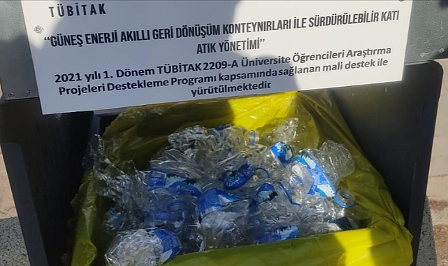 "Tamamen yerli malzemeden üretildi"İşlem sonunda sera gazı salımının yüzde 80 azaldığını vurgulayan Eren, konteynerin üretim süreci hakkında şunları söyledi:"Tamamen yerli malzemeden ve Teknokent bünyesindeki laboratuvarda üretilen, her aşamasında el işçiliği bulunan cihazı geliştirirken, kullanılan sac bağlantılar için sanayiden yardım aldık. Plastik bağlantıları ve aparatları 3D yazıcı ile ürettik. Sadece güneş panelimizi ve akü için gerekli malzemeleri satın aldık. Konteynerlerin ilerleyen dönemlerde kampüste yaygın olarak kullanılmasını sağlamak için üniversitemiz kampüsündeki çöp konteynerlerinden birini dönüştürdük ve ürettiğimiz güneş enerjili sıkıştırma panelini üzerine monte ettik."Tasarımlarının patent sürecinde olduğunu bildiren Eren, Türkiye'de güneş enerjisiyle çalışan akıllı geri dönüşüm kutusunun tüm açık alanlara yerleştirilmesinin çevre, plastik ve görüntü kirliliğinin azaltılmasına önemli katkı sağlayacağını dile getirdi.Atıkların yüzde 90'a varan oranda sıkıştırılmasıyla çöp konteynerlerinin kısa sürede dolup taşmasının önüne geçildiğini kaydeden Eren, kutunun, dolduğunu otomatik mesajla bildirme özelliği sayesinde çöp toplama araçlarının seferlerinin azalacağına, bunun iş gücü ve yakıttan tasarruf sağlarken fosil yakıtlardan kaynaklı sera gazlarının azaltılmasına etki edebileceğine dikkati çekti.