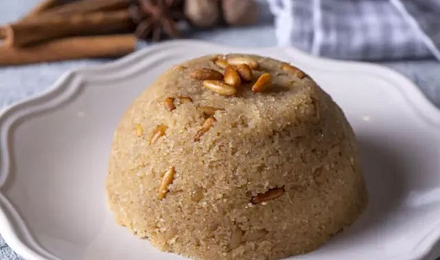 - Kaymağı küçük parçalara bölün ve helva ılıkken üzerine ilave edin. Karıştırıp tercihe göre gül suyu veya tarçınla süsleyin.