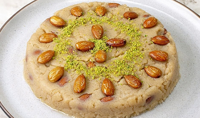 - Ocağı tekrar açın ve unu tahta kaşıkla karıştırarak kavurun. Bademleri ilave edip kısık ateşte rengi değişene kadar kavurun.