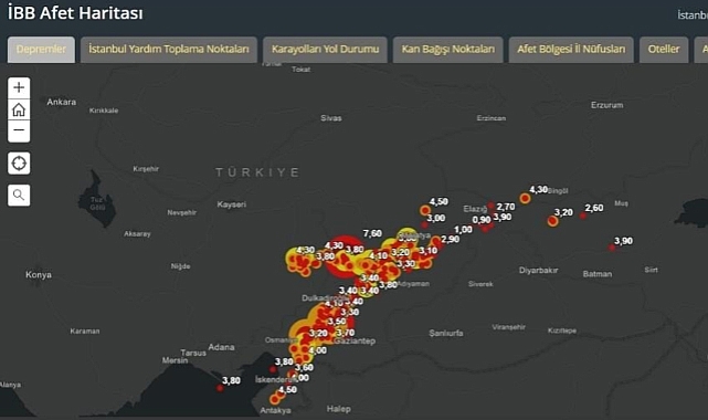 İstanbul Büyükşehir Belediyesi, Ahbap Güvenli Bölge Haritası ve afetharitasi.org gibi platformların verilerini de içeren depreme ilişkin çok sayıda veriyi bir araya toplayan İBB Afet Haritası adlı kapsamlı bir web sitesini yayına aldı. İBB Afet Haritası üzerinden kan bağış noktaları, deprem gerçekleşen yerler, afet bölgesi il nüfusları, oteller, afetzedeler için açık tesisler, karayolları yol durumu, deprem güvenli bölge haritası ve İstanbul’daki yardım toplama noktalarına ulaşılabiliyor.İBB Afet Haritası’na bu link üzerinden ulaşabilirsiniz: https://gisibb.maps.arcgis.com/apps/MapSeries/index.html?appid=b49d96adc42e439cbab407b4a27c30d8