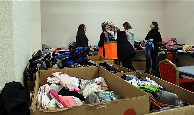 Iğdır'da depremzedelerin giysi, gıda ve diğer ihtiyaçlarının karşılanması için "sosyal market" kuruldu.