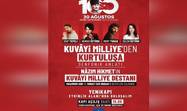 İstanbul Büyükşehir Belediyesi (İBB), 30 Ağustos Zafer Bayramı’nın 100. yılında Yenikapı’da gerçekleştireceği etkinlikte senfonik anlatı, konser ve görsel şölenlerle bellekleri tazeleyecek.İstanbul Büyükşehir Belediyesi (İBB), 30 Ağustos Zafer Bayramı’nın 100. yılında Yenikapı’da gerçekleştireceği etkinlikte senfonik anlatı, konser ve görsel şölenlerle bellekleri tazeleyecek.Bu anlamlı gecede Usta Şair Nazım Hikmet Ran’ın ölümsüz eseri Kuvayi Milliye Destanı’ndan bölümler, genç kuşağın 4 önemli oyuncusu tarafından seslendirilecek. Kuvayi Milliye’den Kurtuluşa’ adlı senfonik anlatıya sesleriyle Edip Tepeli Nergis Öztürk, Mert Turak, Selen Öztürk hayat katacak. Cumhuriyet’in önemli bestecilerinden geçtiğimiz yıllarda kaybettiğimiz Muammer Sun’un ve yeni kuşağın önemli temsilcilerinden Murat Cem Orhan besteleri eşliğinde 70 kişilik CRR Senfoni Orkestrasıyla büyük taarruz anlatılacak. İstanbullular, 80 kişilik koroyla Anadolu halkının bağımsızlık uğruna verdiği amansız mücadeleyi bu senfonik anlatıyla aşama aşama dinleyecek. Zafere giden yolu dinlerken görsel şölen ile milli mücadelenin ruhu akıllara tekrar kazınacak. İstanbullular, karanlık geçen gecelerin, aydınlık sabaha ulaştığı Büyük Taarruz’un zaferini aynı birlik duygusuyla hep birlikte anacak.Türk rock müziğinin öncülerinden Moğollar grubunun 30 Ağustos Zafer Bayramı’nın 100. yılına özel repertuarıyla ise kulakların pası silinecek. Eskimeyen şarkılarıyla, zamansız bir yolculuğa çıkılacak.İstanbulluları Büyük Taarruzu anmaya davet eden İBB Başkanı Ekrem İmamoğlu, bu duygusal gecede inancın, birliğin ve mücadelenin ruhunu İstanbullularla birlikte yaşayacak.Ve o meşhur dizelerinde Usta Şairin dediği gibi;“…Dağlarda tek tek ateşler yanıyordu. Ve yıldızlar öyle ışıltılı, öyle ferahtılar ki şayak kalpaklı adam nasıl ve ne zaman geleceğini bilmeden güzel, rahat günlere inanıyordu”Yenikapı etkinlik alanı 30 Ağustos program akışı:19.00 Kapı AçılışMoğollar Konser21.00 İBB Başkanı Ekrem İmamoğlu Konuşma‘Kuvayi Milliye’den Kurtuluşa’ Senfonik Anlatı