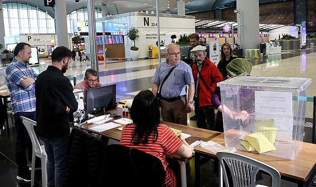 Yüksek Seçim Kurulunun (YSK) belirlediği seçim takvimine göre 14 Mayıs'ta yapılacak Cumhurbaşkanı ve 28. Dönem Milletvekili Genel Seçimleri için gümrüklerde 27 Nisan'da başlayan oy kullanma işlemleri çerçevesinde İstanbul Dış Hatlar Terminali gidiş ve geliş katında belirlenen alanlara sandıklar kuruldu.Yurt dışında yaşayan seçmenler, havalimanının geliş ve gidiş katında kurulan 12 sandıkta oy verme işlemine yoğun ilgi gösterdi. Yurt dışı seçmen kütüğüne kayıtlı olan vatandaşlar, sandık görevlilerine pasaport ve kimliklerini ibraz ederek oylarını kullanabildi.Şu ana kadar İstanbul Havalimanı'nda yurt dışı seçmen kütüğüne kayıtlı 18 binden fazla vatandaşın oy kullandığı öğrenildi.Oy verme işlemi gümrük kapılarında 14 Mayıs saat 17.00'de sona erecek.