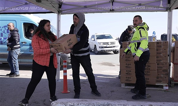Kentte toplanan bağışlar yardım olarak kara, deniz ve havayoluyla bölgeye ulaştırılırken İzmir Büyükşehir Belediyesi’nin 779 personeli, 646 araçla bölgede görev yapıyor. Kurulan çadır alanlarında depremzedelere barınma ve yemek imkanı sağlanıyor.İzmirlilerden gelen desteklerle birlikte 10 günde 154 tır, 123 kamyon, 3 uçak, 3 gemi, 4 otobüs kargo ile yardım gönderildi. 514 bin 198 battaniye, 25 bin 708 gıda paketi, 7 bin 700 yorgan, 851 bin 787 parça giyim malzemesi, 18 bin 396 hijyen paketi, 14 bin 299 paket hijyenik ped, 33 bin 678 bebek bezi ve maması, 677 bin litre içme suyu, 862 adet çadır, 10 bin 40 soba ve ısıtıcı, 181 ton yakacak, 65 adet jeneratör, 3 ton elma, 33 bin 359 litre süt ve tonlarca insani yardım malzemesi İzmir Büyükşehir Belediyesi koordinesinde afet bölgelerine gönderildi.