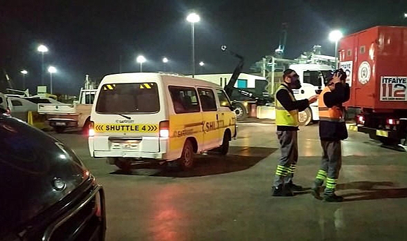 Dün akşam saat 22.00'da Derince ilçesinde bulunan Safiport Limanı'nda, nem ve su ile temas etmesi halinde tutuşabilen alüminyum fosfit, gemiden indirildiği sırada alev aldı.