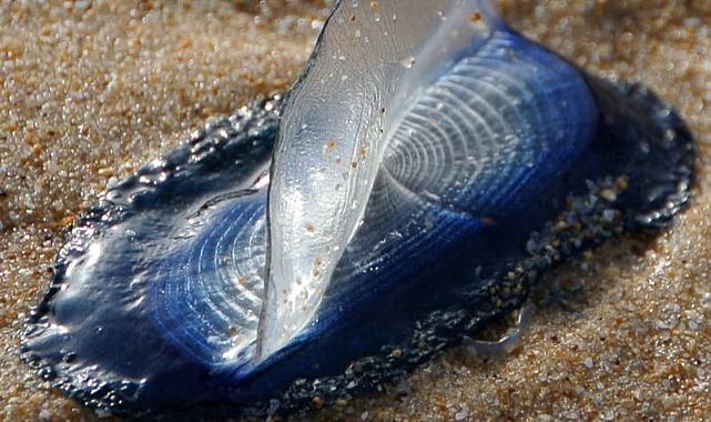 Bir ekolojik tur acentesi olan Dana Wharf Whale Watching, suda genellikle rüzgar yelkencileri diye bilinen organizmalardan "yüzlercesini" gördüğünü söyledi.Kaliforniya'daki Point Reyes National Seashore milli parkına göre, bilimsel olarak Velella velella diye bilinen bu canlılar denizanalarının kuzenleri.Bunlar; denizanası ve mercanların da ait olduğu Cnidaria (Knidliler) adı verilen hayvan grubuna ait.Milli parkın geçen hafta Facebook'ta paylaştığı bir gönderiye göre Velella, rüzgarı yakalamak için düz, oval gövdesi üzerinde dik duran yarı saydam bir "yelken" kullanarak açık okyanusta yüzen bir polip topluluğu.Bilim insanları, bu organizmaların ilkbahar ve yaz başlarında güçlü rüzgarların onları karaya itmesiyle sahillere vurduğunu söylüyor.Vücutlarına bağlı yelken, bu canlıların rüzgara kapılıp su yüzeyinde savrulmalarına yardımcı oluyor.Milli park, bu nedenle söz konusu canlılara halk arasında "rüzgar yelkencileri" dendiğini belirtiyor.Bu canlıların ayrıca insanları sokmayan ama yemek için hayvansal plankton ya da balık yumurtalarını toplamak için kullandıkları dokunaçları da var.Kaliforniya'daki son fırtınalarla bağlantılı olanlar gibi güçlü rüzgarlar, cnidariaları kıyılara doğru itme eğiliminde. Söz konusu canlılar da sahilde mahsur kaldıklarında parçalanıp ölmeye meyilli.Point Reyes National Seashore'dan yapılan açıklamada, "Kıyı şeridini maviye boyayan taze bir Velella birikimine rastlayabilirsiniz ama bir süredir oradalarsa, buruşuk ve kuru selofan ovalleri gibi görünecekler" ifadelerine yer verildi.Önceki araştırmalar, bu canlıların karada görülmesinin, iklim değişikliği nedeniyle muhtemelen daha yoğun hale gelen El Niño Güney Salınımı olaylarıyla bağlantılı olarak okyanus yüzeyinin ısınmasından etkilenebileceğini gösteriyor.