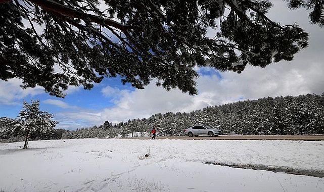 İlçeye 10 kilometre uzaklıktaki 2 bin 368 rakımlı Handere geçinde etkili olan yoğun kar kışı aratmadı. Karla kaplanan sarıçam ağaçları güzel görüntüler oluşturdu.