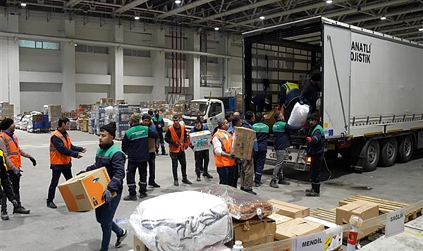 Bakanlıktan yapılan açıklamaya göre, depremzedelere yardımların hızlı ulaştırılması kadar ihtiyaç malzemelerinin tasnif edilmiş bir şekilde öncelikli lokasyonlara sevk edilmesi de büyük önem taşıyor. Bu amaç doğrultusunda Sanayi ve Teknoloji Bakanlığı koordinasyonunda OSB’ler ve özel sektör eliyle Kayseri’de lojistik aktarma merkezi kuruldu. Türkiye içinden ve yurt dışından gelen yardım malzemelerinin dağıtımında önemli rol üstlenen merkezde binlerce ürün kategorize edilerek TIR’lara yükleniyor. Su, gıda, giyim, ısınma, jeneratör, hijyen gibi malzemelerin ayrıştırıldığı merkezden çıkan onlarca TIR, Aile ve Sosyal Hizmetler Bakanlığı tarafından kurulan Acil Sosyal Yardım Ekipleri (ASYA) aracılığıyla afet bölgesindeki depolara taşınıyor. Yardım malzemelerini buradan da afetzedelere ulaştırılıyor. Dayanışma üst seviyede Kahramanmaraş ve Hatay merkezli depremlerin ardından hem yurt içinde hem de uluslararası alanda dayanışma en üst seviyeye çıktı. Türkiye’nin yanı sıra dünyanın dört bir yanından tonlarca ayni yardım, çeşitli ulaşım araçlarıyla deprem bölgesine sevk edilmeye başlandı. Aktarma ve lojistik merkezlerSanayi ve Teknoloji Bakanlığı da bir taraftan sanayiciler ile deprem bölgesi arasında yardım koridoru oluştururken diğer taraftan Organize Sanayi Bölgelerinde (OSB) kurduğu aktarma ve lojistik merkezleri ile yardımların hızlı ve güvenli bir şekilde depremzedelere ulaştırılmasına yardımcı oluyor. 3 ilde kuruldu Bakanlık bünyesinde oluşturulan kriz merkezi aracılığıyla deprem yardımlarının koordinasyonu için Adana, Gaziantep ve Kayseri’de lojistik aktarma merkezleri oluşturdu. Bunlardan biri olan Kayseri Acil Sosyal Yardım Lojistik ve Aktarma Merkezi, yurt içi ve yurt dışından gelen yardımların deprem bölgesine sevk ve idaresi görevini üstlendi.Ürünler tasnif ediliyorKayseri OSB içerisindeki fuar alanının dönüştürülmesiyle oluşan merkeze gelen ürünler; su, gıda, giyim, ısınma, jeneratör ve hijyen gibi kategorik olarak ayrıştırılıyor. Ayrıştırma ve tasnif işleminin ardından tekrar TIR’lara yüklenen ürünler, AFAD ve Türk Kızılay’ın öncelikli ihtiyaç listesine uygun olarak şehirlere gönderiliyor.Verimli ve hızlıÜrünler, Aile ve Sosyal Hizmetler Bakanlığı tarafından doğal afetler sonrasında hızlı bir şeklide harekete geçilmesi amacıyla kurulan ASYA ekiplerine ait 67 depoya naklediliyor. Yüzlerce TIR’lık, on binlerce paletlik yardım malzemeleri, belli bir plan ve program çerçevesinde depremzedelere ulaştırılıyor.Bu işleyiş sayesinde afet lojistiği hızlanarak daha verimli hale geliyor. Merkeze, Mehmetçik, yerel yönetimler ve OSB’ler ile teknoloji şirketi Trendyol da personel desteği veriyor. 24 saat esaslı 3 vardiyada çalışan personel, aralıksız bir şekilde tasnif ve yükleme işlemlerine devam ediyor.Trenle gelen yardımlarKayseri ASYA Lojistik Depo Sorumlusu Süleyman Konak, merkeze günlük 20-25 arası TIR girişi olduğunu belirterek “Bir yandan TIR’larımız girerken bir yandan da bölgedeki ihtiyaca göre dolup o bölgelere sevkiyatı yapılıyor. Aynı zamanda istasyona trenle gelen vagonlarımız da var. O vagonlarla da aynı operasyonlara devam ediyoruz.” dedi.Kayseri OSB’deKayseri Organize Sanayi Bölgesi’ne ait fuar merkezinin 8 bin metrekare kapalı alana sahip olduğunu anlatan Konak, “Vardiya sistemiyle yaklaşık 50-60 personelin olduğu bir sistemde çalışıyoruz. Burada Kayseri Büyükşehir Belediyesi olsun, ilçe belediyeleri olsun, aynı zamanda İŞKUR kapsamında işçilerimiz bu operasyona destek veren birimler.” diye konuştu. Sevk ve planlamaDaha hızlı ve verimli bir afet yönetimi için operasyona destek verdiklerini belirten Trendyol Operasyon Direktörü Sedat Merdan, merkezde lojistik yönetimi anlamında çalışmalar yürüttüklerini kaydederek “Bizim buradaki amacımız, yurt dışından gelen yardımların önden tasnif edilerek bölgelerin ihtiyaçlarına göre sevk planlarını gerçekleştirmek. Sadece bizim değil bu konuda bize destek olan birçok arkadaşın çok büyük emeği var. Birimiz olmasak bu organizasyon olması mümkün değildi.” ifadelerini kullandı.