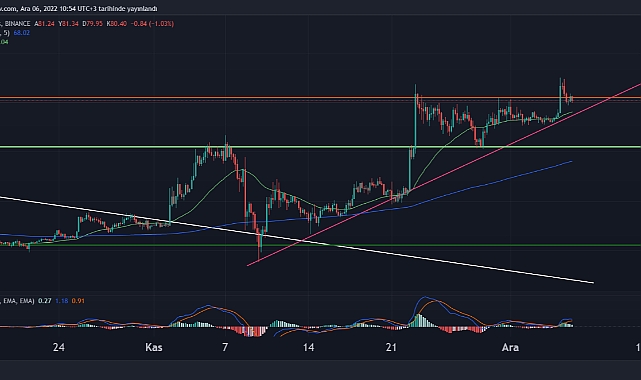 Majör kripto paralar arasında Kasım ayında en iyi performansı gösteren kripto para olan Litecoin, bir aylık süreçte yaklaşık %65 değer kazandı ve hareketini sürdürüyor. Dün de ikinci kez 80$ direncini deneyen ve ilk etapta aşmayı başaran Litecoin, bu hareketin devamını şu anda getirememiş gözüküyor. Anlık direnç seviyesinin hemen üzerinde fiyatlanan Litecoin için bu bölgeden onay alınması halinde ilk hedef psikolojik direnç olan 90$ seviyeleri olacağı yönünde. Aşağıda ise 75$ ve 71$ destek bölgesi olarak karşımıza çıkacağı öngörülüyor.