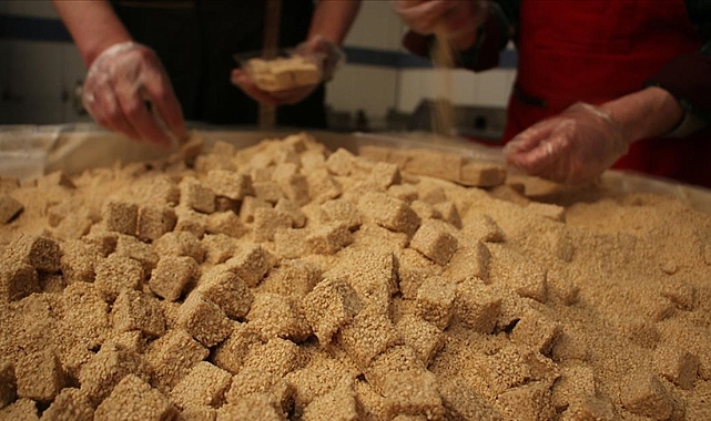 Tepsilerde dinlenmiş helva, kesme makinesi ile küp şeklinde kesilerek susama bulanır ve yine helvaların birbirine yapışmaması için aralarına susam dökülerek tepsilere yerleştirilir. Kutulanarak satışa sunulur.