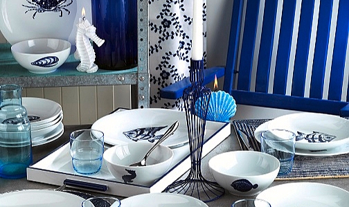 Mavi ile beyazı en güzel şekilde buluşturan Kütahya Porselen serileri, yaz sofralarınıza deniz esintisini taşıyor. Kütahya Porselen Marine Serisi 24 Parça Yemek Setlerinden pusula desenli olan set sofradaki herkesi kendine hayran bırakırken; istiridye, denizatı, balık gibi desenlerin süslediği diğer set ise yaz sofralarınıza şık bir dokunuş katıyor. Sevdiklerinizle yaz sofralarının başında geçirdiğiniz anlara şıklık ve konfor katan Kütahya Porselen, 18 Parça İkram Seti ile mavi ve beyaz renklerin dinlendirici etkisini ve zarafetini sofralara taşırken, dikdörtgen ve kare formundaki tabaklarıyla fonksiyonel bir kullanım da sunuyor.