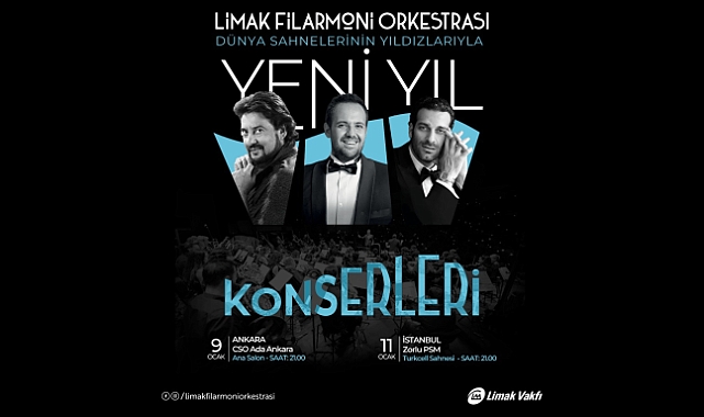 Limak Vakfı tarafından 2017 yılında kurulan Limak Filarmoni Orkestrası, gelenekselleşen yeni yıl konserlerinde bu kez de dünyaca ünlü üç tenoru aynı sahnede ağırlıyor; Murat Karahan, Rame Lahaj ve Marcelo Álvarez ile, 09 Ocak’ta CSO ADA Ankara’da, 11 Ocak’ta Zorlu PSM İstanbul’da gerçekleşecek muhteşem konserler ile, çok sesli müzik geniş kitlelere ulaşmaya devam ediyor.