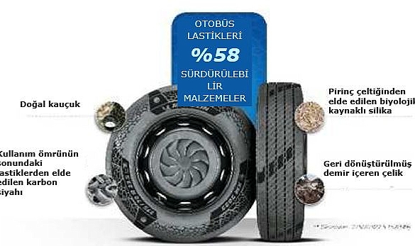 Michelin’den Sürdürülebilir Malzeme İçeren Onaylı İki Yeni Lastik Mobilite alanında öncü şirketlerden biri olan Michelin, yüksek teknolojili malzemeler alanındaki güçlü deneyimiyle, sırasıyla yüzde 45 ve yüzde 58 sürdürülebilir malzeme içeren; biri otomobiller diğeri otobüslerde kullanılmak üzere iki yeni lastik çıkarıyor. Yol kullanımı için onaylı olan bu lastikler, mevcut lastiklerle tamamen aynı performans seviyelerine ulaşıyor.