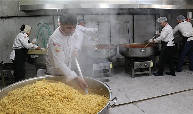 Kahramanmaraş merkezli depremlerden etkilenen Adıyaman'da, Muğla'daki otellerden gelen şefler ve öğretim görevlileri, her gün 35 bin kişilik yemek hazırlıyor.