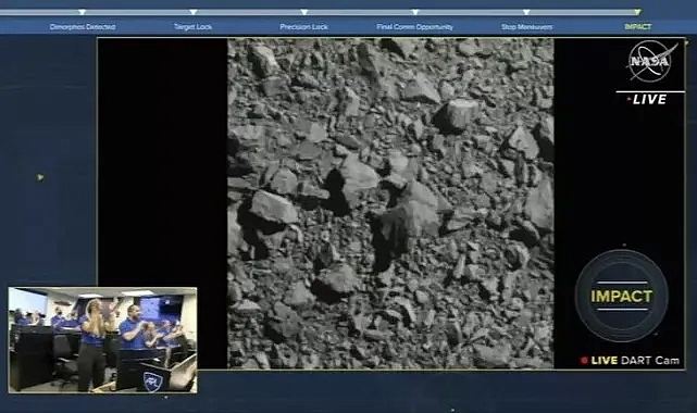 Amerikan Havacılık ve Uzay Dairesi'nin (NASA) DART misyonu kapsamında fırlattığı uzay aracı Dimorphos adlı bir asteroide tam isabetle çarptı. NASA çarpma anının görüntülerini yayınladı.