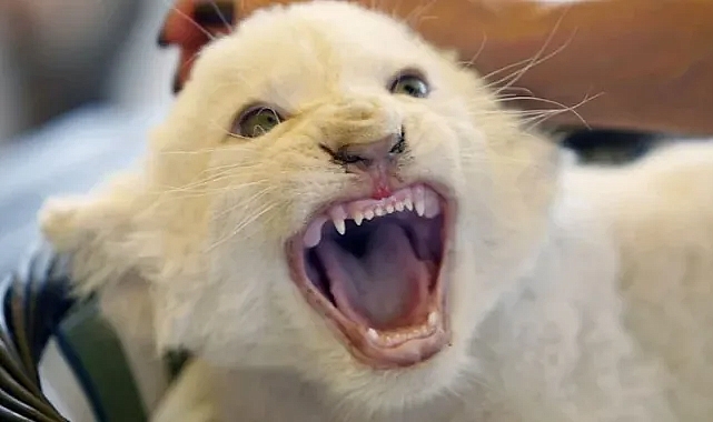 Nesli tükenmekte olan Afrika beyaz aslanlarından biri dört yavru dünyaya getirdi