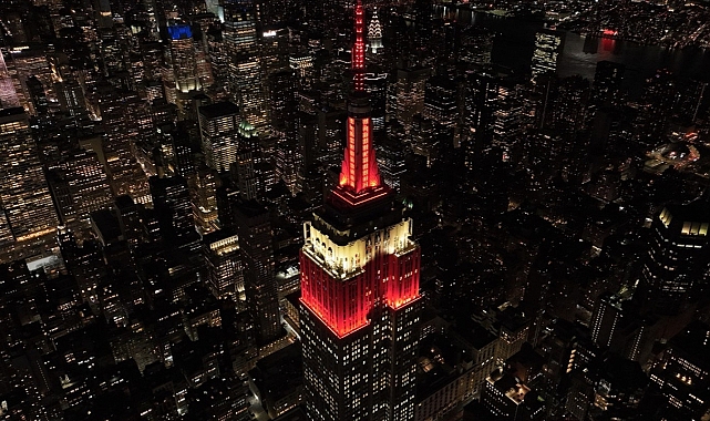 New York'ta Empire State binası depremzedeler için kırmızı beyaz renklerle ışıklandırıldı
