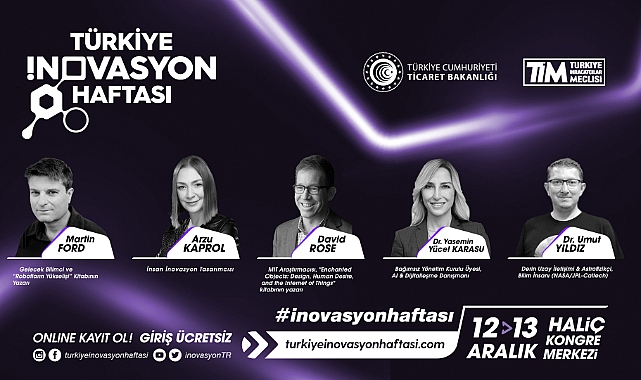 Türkiye Cumhuriyeti Ticaret Bakanlığı ve Türkiye İhracatçılar Meclisi tarafından 12-13 Aralık tarihlerinde Haliç Kongre Merkezinde “İnovasyonun Yeni Yüzyılı” teması ile 9. kez düzenlenecek Türkiye İnovasyon Haftası için online kayıtlar devam ediyor. Türkiye’nin en kapsamlı inovasyon etkinliğinde yerinizi almak ve ücretsiz giriş yapmak için inovasyonhaftasi.com web sitesi üzerinden kayıt yapılıyor. Global şirketlerin üst düzey yöneticilerinden, fikir liderlerine, akademisyenlerden öğrencilere, Türkiye’nin önde gelen şirket yöneticilerinden kamunun üst düzey temsilcilerine kadar inovasyona yön veren tüm paydaşlar bir araya geliyor. İnovasyonun farklı alanlarda ele alındığı paneller, Türkiye’nin inovasyon atakları ve pojeleri, güncel öncelikler ve inovatif teknolojiler, global zihinli başarılı girişimler, inovasyonu cesaretlendiren yatırımlar, inovasyonun geleceğini gören genç nesiller, enstalasyonlar, dijital sanat edisyonu, Arura Sergisi, Sıfır Noktası Sergisi, Down to Earth Sergisi, Özel Seri Sergisi, Past, Present & Future Sergisi gibi zengin içeriğiyle ilham veren inovasyon etkinliği sizleri bekliyor. Gelişimin, değişimin ve dönüşümün önde gelen isimleri, Türkiye’nin en kapsamlı inovasyon etkinliğinde buluşuyor.Türkiye Cumhuriyeti Cumhurbaşkanı Recep Tayyip Erdoğan'ın teşrifleri ile düzenlenecek olan İnovaLİG Şampiyonları Ödül Töreni, gençlere öncülük eden İnovaTİM İnovasyon Yarışması Ödül Töreni ve kurumsal inovasyon öncülerinin yer alacağı İnoSUİT Sertifika Töreni ile başarıların taçlandırıldığı etkinlikte; savunma sanayinin yükselen değeri BAYKAR’ın CEO’su Haluk Bayraktar, gelecek bilimci ve “Robotların Yükselişi” kitabının yazarı Martin Ford, MIT Araştırmacısı ve “Enchanted Objects: Design, Human Desire, and the Internet of Things” kitabının yazarı David Rose, girişimcilik dünyasının en önemli temsilcilerinden, aynı zamanda “Venture Adventure” kitabının yazarı, CapitalDemocracy’nin kurucusu Amir Hegazi etkinlikte ana konuşmacılar arasında yer alarak; deneyimlerini, fikirlerini ve öngörülerini konukları ile paylaşacak.Türkiye’nin inovatif ürün ve hizmetlerini üreten projenin stratejik partnerleri arasında yer alan TEB, LC WAIKIKI, TUSAŞ, NADİR RAFİNE METAL, TURKCELL, ZİRAAT BANKASI, İGE İHRACATI GELİŞTİRME, TEI, TÜRKİYE SİGORTA, TİRYAKİ, MONSTER, SOCAR ve TURKISH AIRLINES’ın Türkiye İnovasyon Haftasına yönelik hazırlayacağı deneyim alanlarında yeni nesil ürün ve çözümler tanıtılırken ilgili panellerde marka temsilcileri de tecrübelerini paylaşacak.